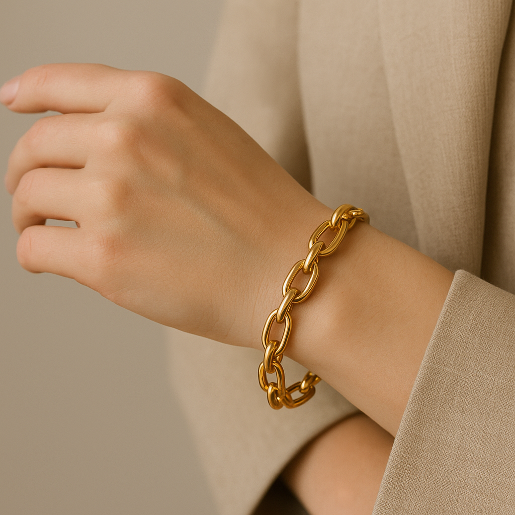 • Acabado y chapado: una pulsera bañada en oro no tiene el mismo valor que una maciza; el tipo de acabado influye en la durabilidad y precio.